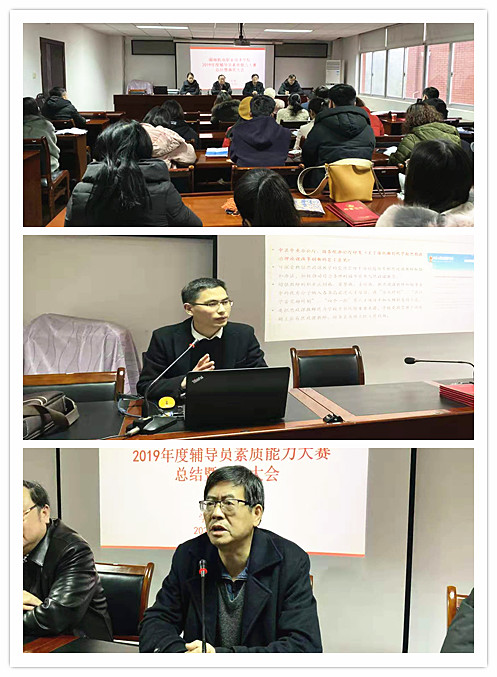 为全面贯彻落实全国、全省教育大会精神、高校思想政治工作会议精神和《普通高等学校辅导员队伍建设规定》要求,进一步促进学院辅导员队伍专业化职业化专家化建设,1月3日,学生工作部在办公楼三会议室举行了2019年度辅导员素质能力大赛总结暨表彰大会。学院党委书记成立平,副院长李云中,学生工作部长王凤斌、心理咨询中心主任宋利敏及各二级学院党总支副书记、学管干事、全体辅导员参加了大会。
