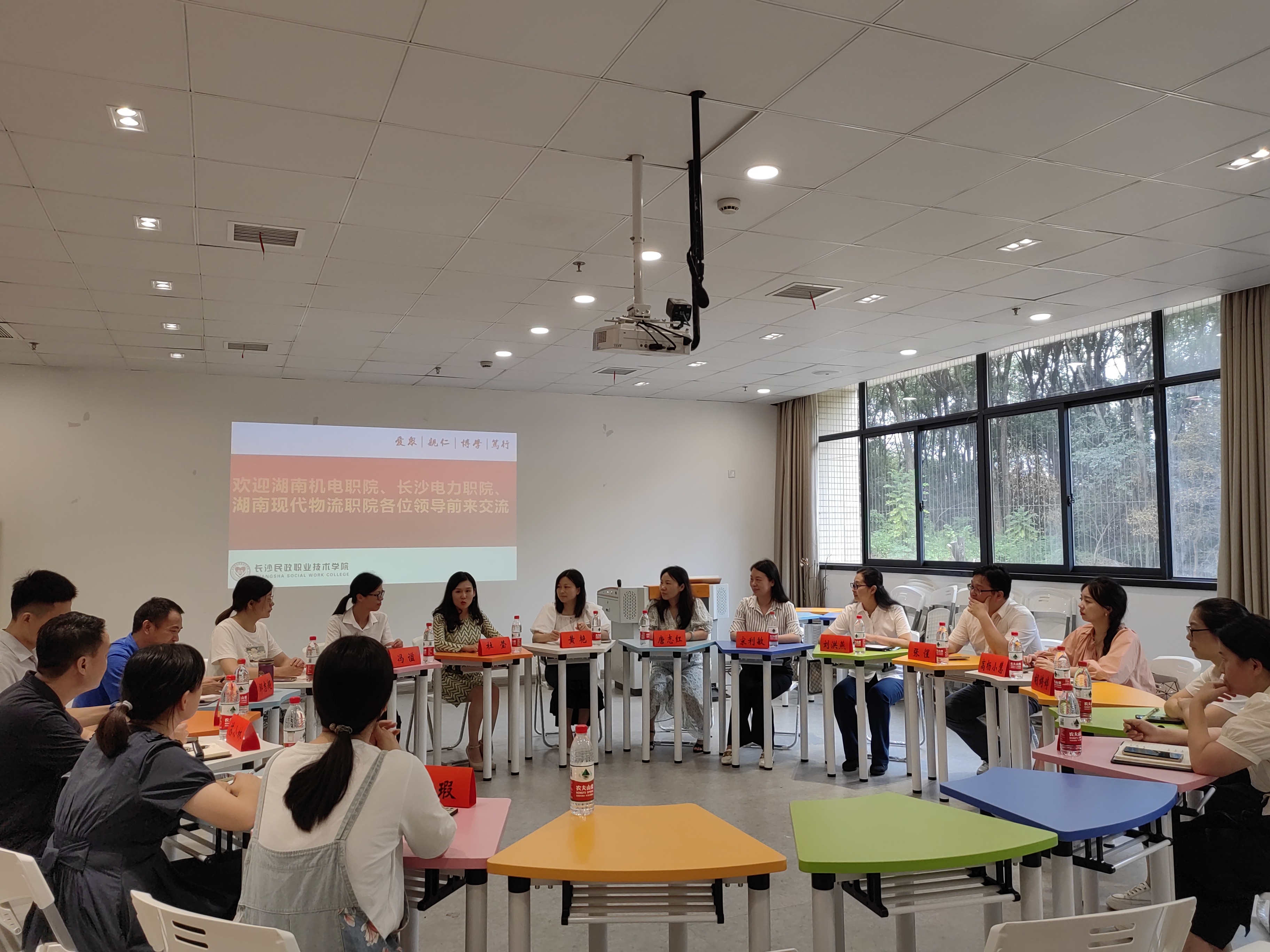 长沙民政职业技术学院学工处副处长杜莹首先对三所院校的到来表示热烈欢迎,并介绍了心理发展指导中心的基本情况,副主任丁玲及另外四位专职老师分别围绕心理平台建设、心理课程建设、心理活动开展、心理咨询普查及危机干预五方面工作逐一进行了重点介绍,工作内容丰富立体且成效显著,充分体现了心理健康教育“五位一体”的工作格局与方向。